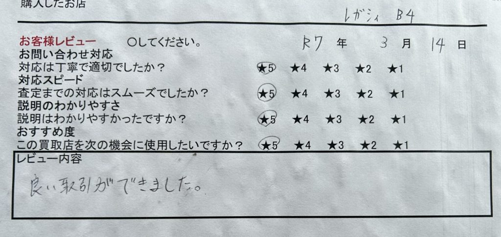 この買取店を次の機会に使用したいですか? ★5